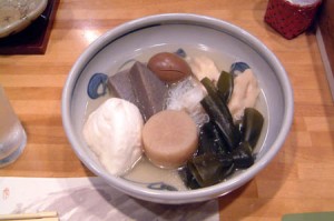 bát với một số nước dùng và được thoa mù tạt. Oden là một chút hương vị